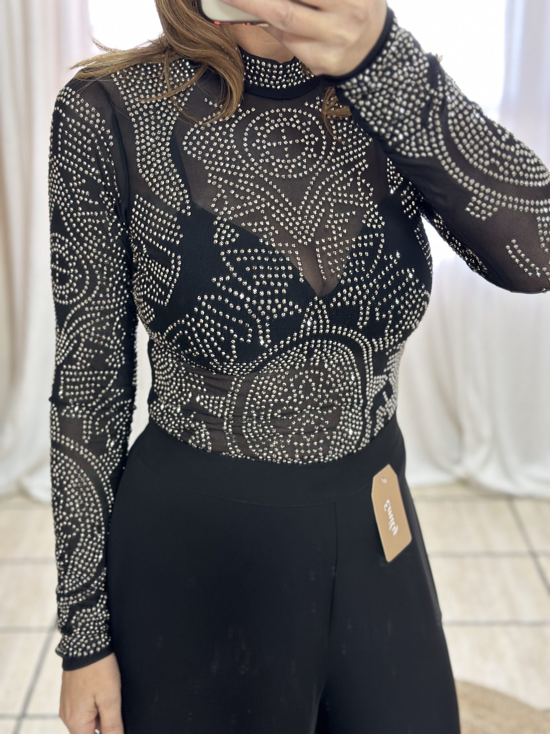 Body microtul bordado con tachas en frente y mangas